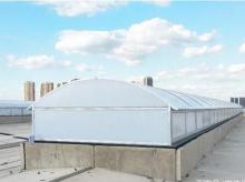 圆拱型侧开式天窗,以采光为主,同时侧窗扇开启可达到通风排烟功能,窗体上部为圆弧形,有利于排水和积雪滑落。窗扇设计高度和开启角度不同,有效通风面积不同。