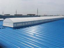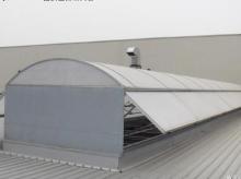 圆拱型侧开式天窗,以采光为主,同时侧窗扇开启可达到通风排烟功能,窗体上部为圆弧形,有利于排水和积雪滑落。窗扇设计高度和开启角度不同,有效通风面积不同。